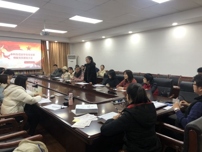 12月6日下午,必赢线路检测中心本科生信息学生党支部在文理楼290会议室召开预备党员接收大会,大会由支部书记汤斌飞主持,支部全部党员参与。