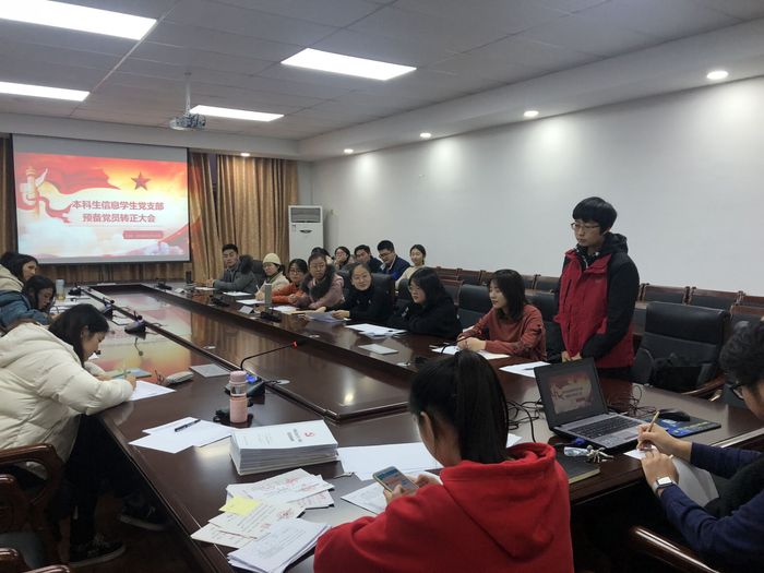 12月13日下午,必赢线路检测中心本科生信息学生党支部于文理楼290会议室召开预备党员转正大会。本次大会由支部书记汤斌飞主持,支部党员和入党积极分子参加。