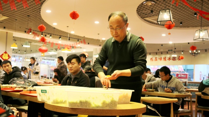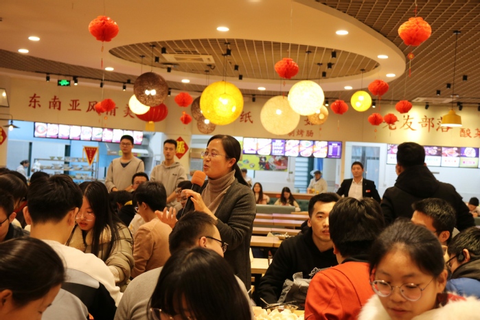 12月23日下午,应用物理学专业第二届“师生茶话会”活动在荟萃餐厅三楼举行,四个年级120余名学生参加活动,必赢线路检测中心院长魏宝君,党委副书记李宝玺和物理学科十几位老师,与学生坐在一起,包饺子,话家常,送祝福,表演才艺,气氛热烈非凡。