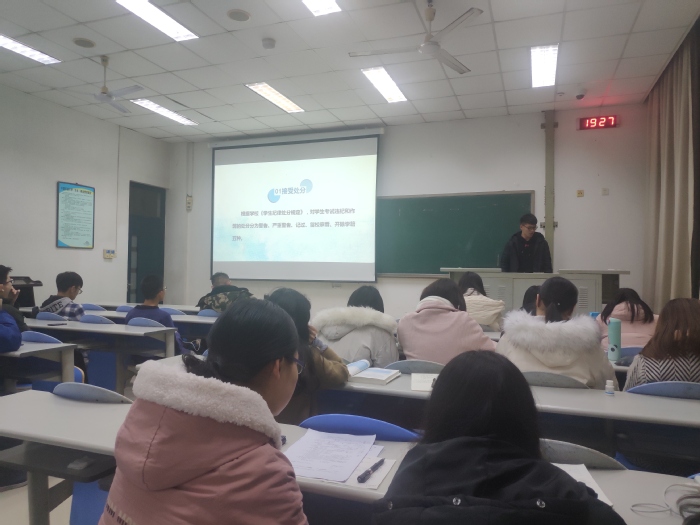 为强调诚信考试的重要性,提高学生诚信考试的意识,营造良好的考试氛围,12月28日晚,化学1802班于南堂101教室举办诚信考试主题班会,此次班会由班长吴晨组织,班级全体成员参加。