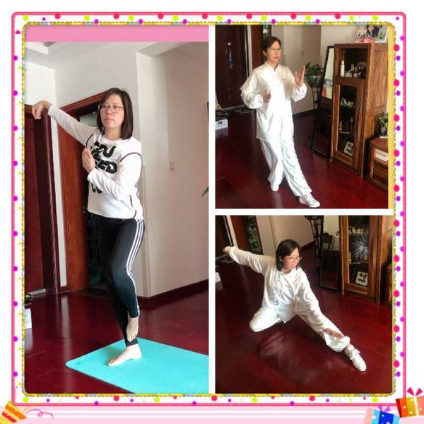 基础物理系刘素美在家练习太极拳