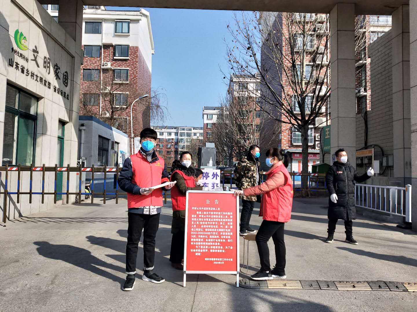 光电1701班王成志在山东省淄博市张店区西张村社区门口进行志愿者活动。主要负责在检查卡点处工作,认真的执行社区分配的工作,在人员出入的时候,负责检查有无出入通行证明并派发登记;并且在有人进入小区时严格测量体温。王成志同学说:“虽然经过这几天志愿者工作后,脸上捂得有些难受,手上闷出汗疹,但是能够让社区在疫情期间保持安全,这是值得的。“位卑未敢忘忧国”,我们每个人都应当通过自己的方式,为抗击疫情付出自己的努力,希望国家早日打赢这场新冠病毒防疫战,武汉加油,中国加油。”