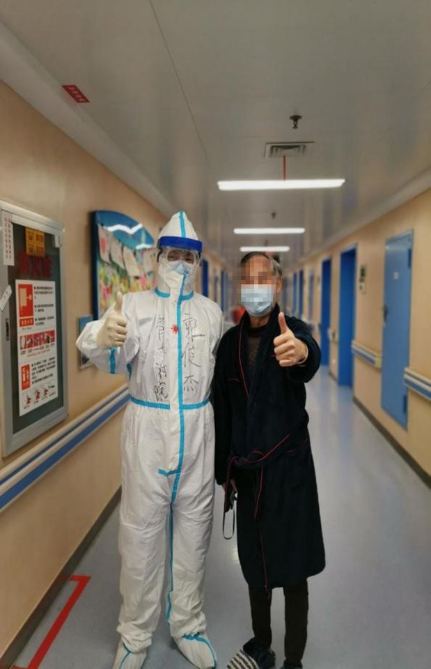 郭俊杰照料过最年长的一位患者是91岁的老爷爷,来入院时身体情况非常糟糕,喘憋严重,肺部病变严重影响了老爷爷的日常活动,生活完全不能自理,外出做检查时需多人搀扶,在郭俊杰及大家的共同努力下,老爷爷目前病情明显好转,就在一次外出检查时,老爷爷说:“天气好,真想多晒晒太阳”。疲惫的脸庞露出了久违的笑容。看着患者病情的好转,郭俊杰心中倍感欣慰骄傲。