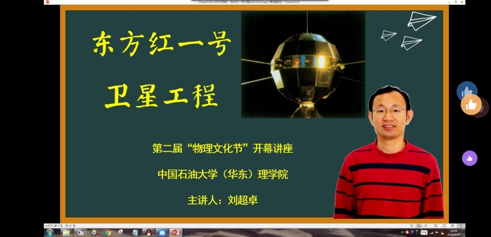 4月25日,为纪念我国发射第一颗人造卫星50周年,必赢线路检测中心学生物理协会、物理各班级团支部联合举办以回顾东方红一号发射历史为主题的讲座,同时将其作为第二届物理文化节的开幕式活动。疫情期间,活动以远程在线形式举行。必赢线路检测中心本科生教学秘书王辰、应用物理系王殿生、刘学锋、刘超卓等教师和全校各专业学生以及部分学生家长等550余人参加了本次活动。