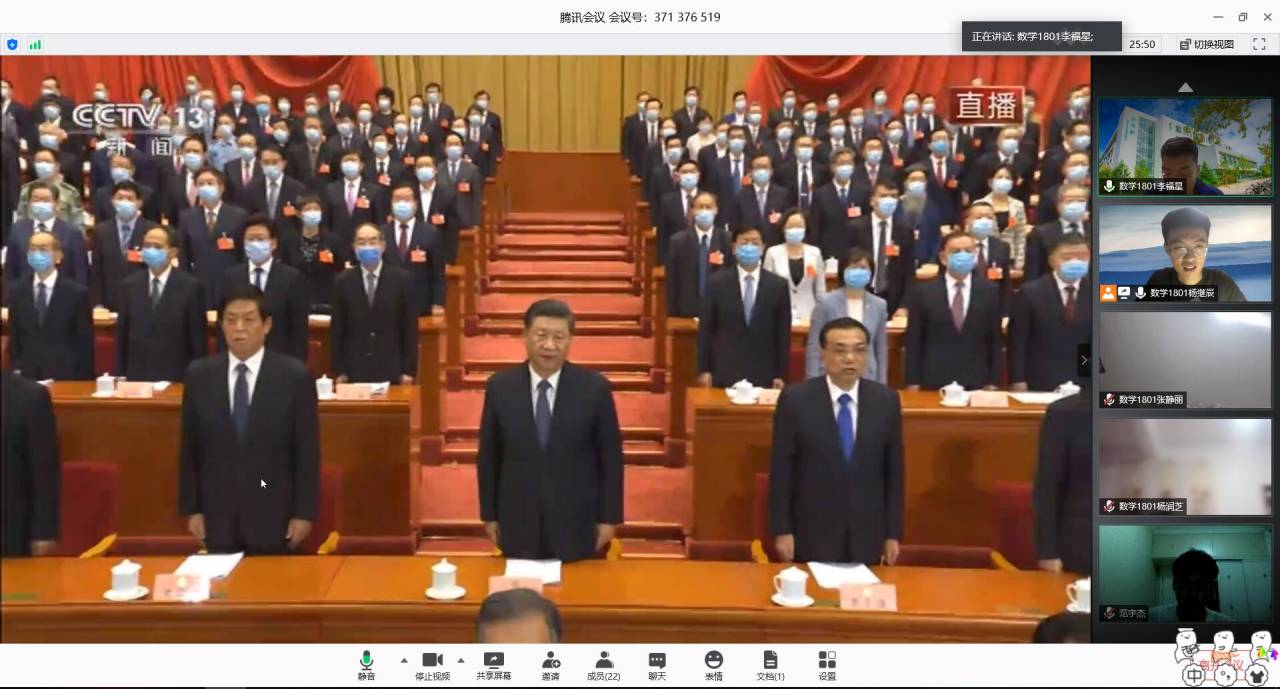 为引导学生关注两会,深入了解国情与时代发展,切实增强主人翁意识、责任意识,5月21日晚上,数学1801班于线上开展“践行两会精神,奉献青春力量”主题教育班会。此次班会由数学1801班班长李福星主持,数学1801班全体学生参加。