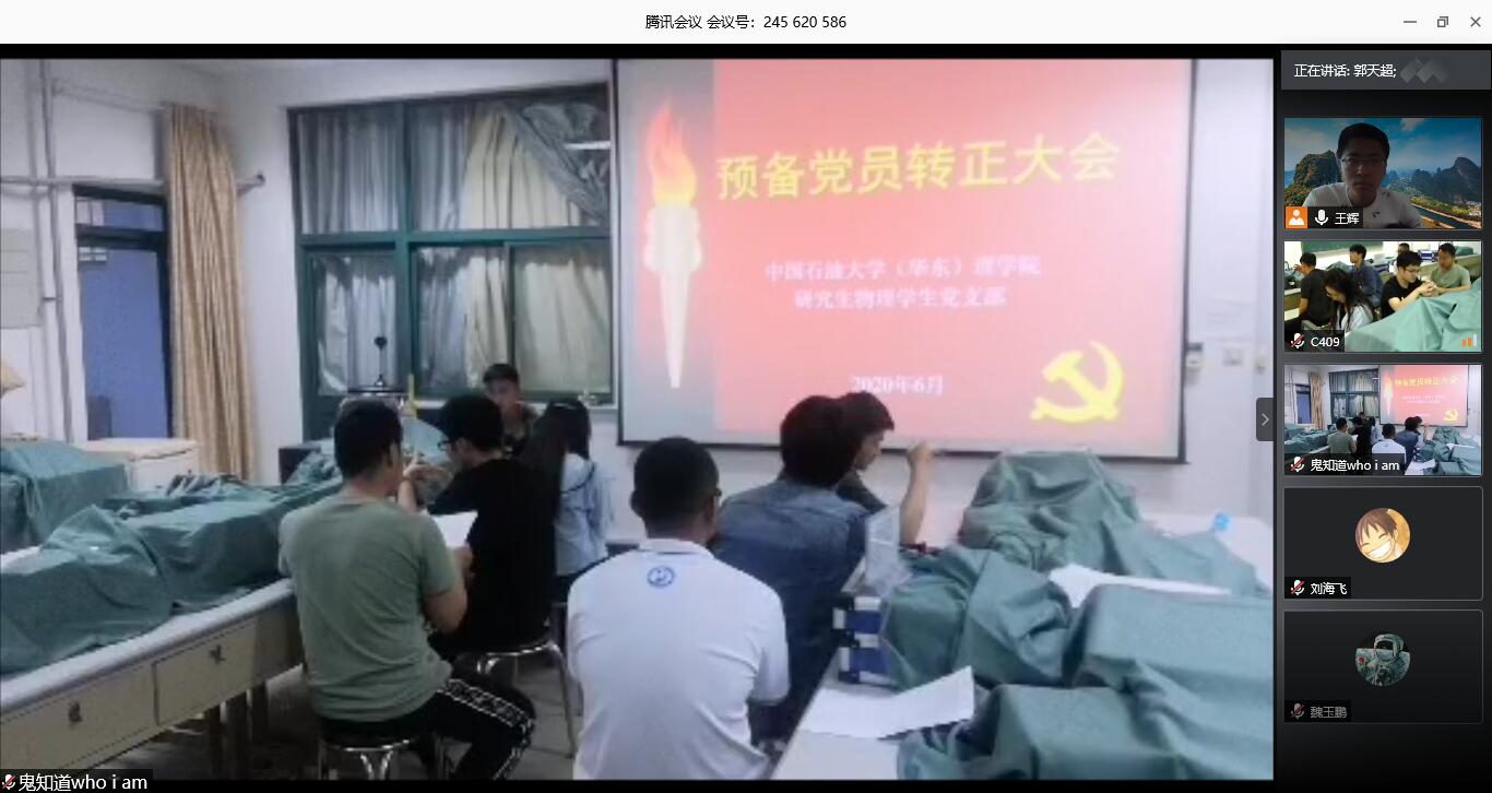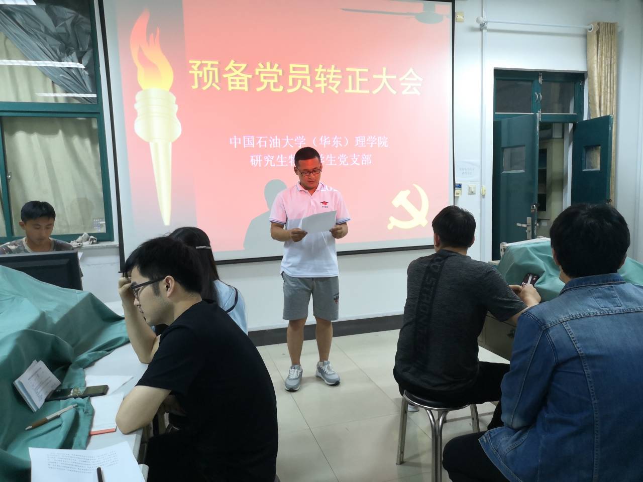为响应党的号召,培养优秀党员,使党员在本支部发展党员工作过程中充分表达个人意愿,因疫情影响特殊情况,研究生物理学生党支部请示必赢线路检测中心学生党总支,审批同意支部采取线下线上结合的方式召开预备党员转正大会。6月18日,支部于基础实验楼C409室召开预备党员转正大会。本次大会由任臣同志主持,与会党员有党支部书记王辉,我支部共有党员14人,正式党员应到8人,实到会有表决权的党员线下4人、线上4人,符合规定人数,可以开会。