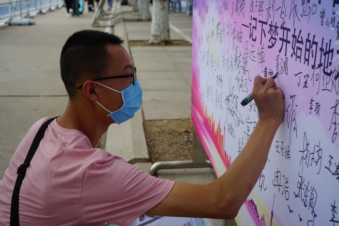 新生在签名墙上签字 徐晨摄