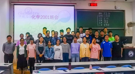 最后,周亭、高旭与化学2001班全体同学亲切合影。