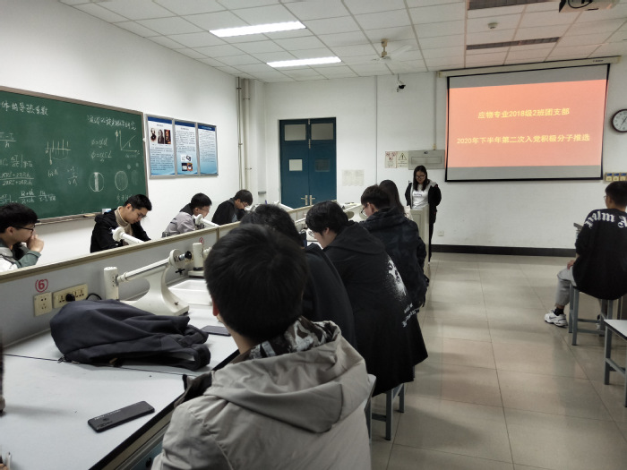 为培养和造就社会主义事业接班人、加强党员队伍建设、充实党的新生力量,根据院团委要求,应用物理1802班于11月18日在基础实验楼D211举办了入党积极分子推优大会,进行了2020年下半年第二次入党积极分子的推选。此次会议由物理1802团支书朱帅霏主持,物理1802团支部全体成员参加。