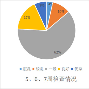 从检查时间上来看,每周学院整体的宿舍卫生情况相差不大,仍需要同学们平时多注重宿舍卫生的管理。