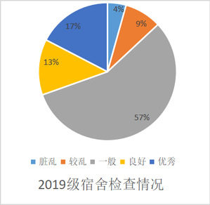 宿舍卫生检查内容主要有宿舍地面和床铺整洁度、宿舍线路安全、阳台等,从每周检查情况来看,绝大多数学生宿舍干净整洁,无违规用电情况,但个别宿舍卫生较差。