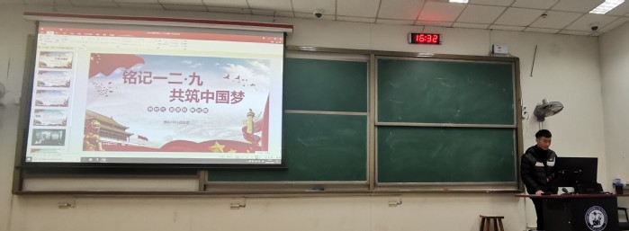活动伊始,刘效银向学生们介绍了一二·九运动的起因,即“九一八”事变之后,日本帝国主义加紧侵略中国。他们在东北地区推行殖民地化统治的同时,利用南京国民政府的不抵抗主义,把侵略魔爪一步步伸向华北,民族危机日益严重。通过刘效银的介绍,学生们了解了一二·九运动。随后,刘效银播放了视频,通过观看视频,同学们掌握了一二·九运动是动员全国人民抵抗日本侵略的爱国运动,并且形成全国人民抗日民主运动的新高潮,推动抗日民族统一战线的建立。活动最后,刘效银呼吁同学们,要从历史中学习、继承并发扬先辈们的爱国精神。