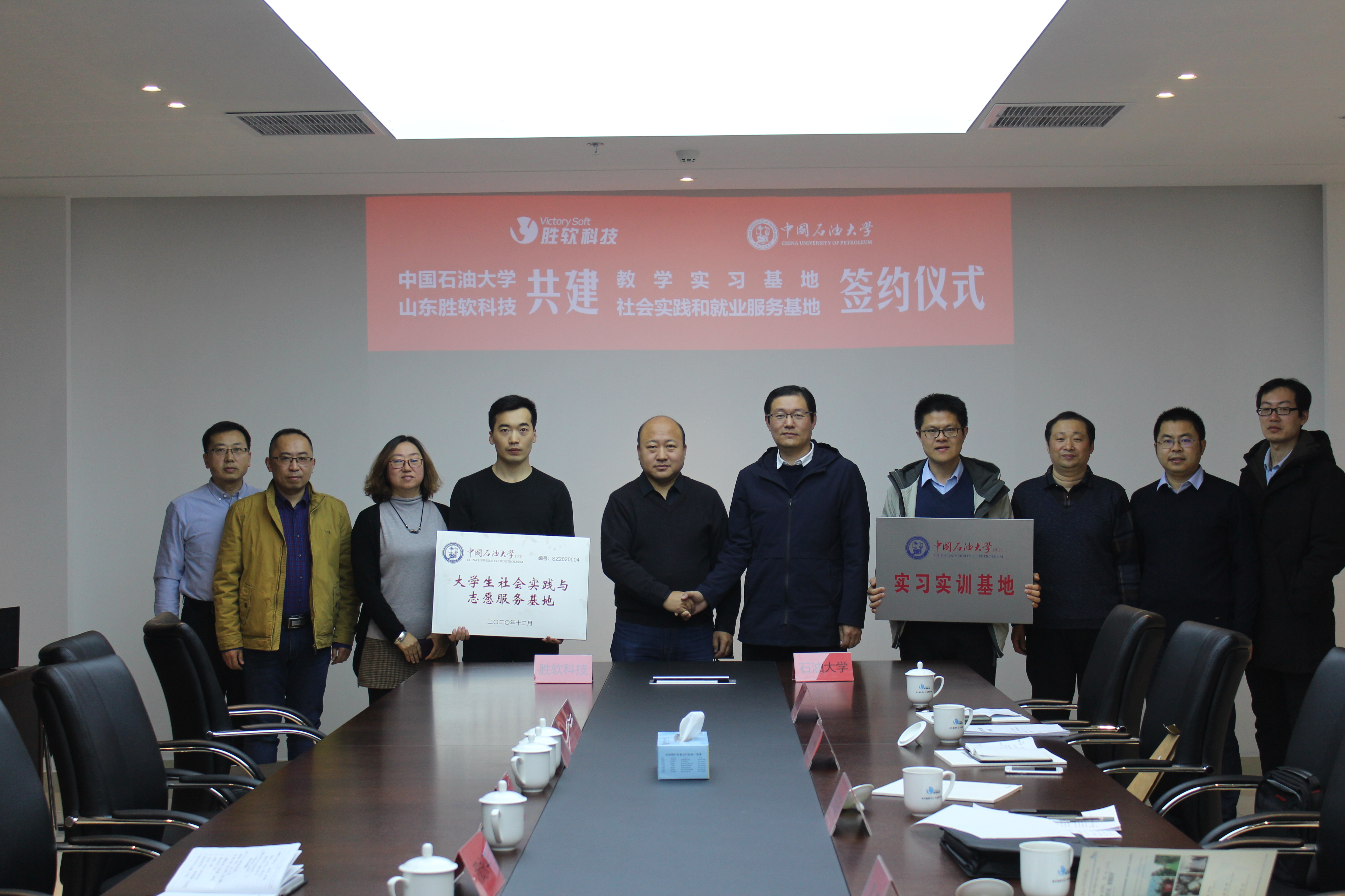 12月23日下午,我校在东营市与山东胜利软件科技有限公司举行实习实训暨大学生社会实践与志愿服务基地签约揭牌仪式。山东胜利软件科技有限公司董事长徐亚飞、副总裁穆永平、人力资源总监陈颖、技术研发中心经理张琦、智能油气事业部经理周涛,必赢线路检测中心副院长张志庆、数据科学与统计系主任陈华、教学办王辰、辅导员刘威等人参加签约揭牌仪式。副院长张志庆与副总裁穆永平共同签署共建实习实训暨大学生社会实践与志愿服务基地协议书,并为基地揭牌。