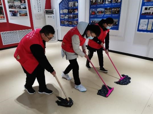 接着同学们对校史馆进行义务清扫。学生有序分组,各自承担不同的清扫任务,认真打扫每个角落。