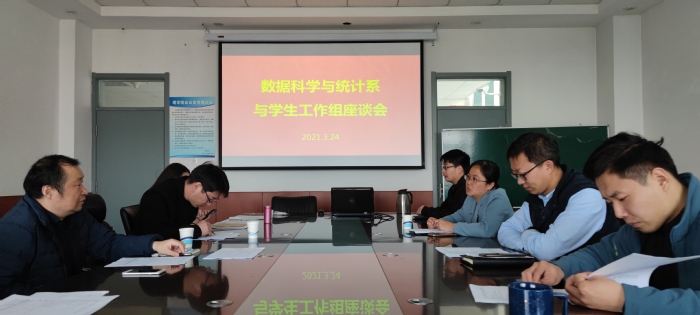 3月24日下午,必赢线路检测中心于文理楼295召开数据科学与统计系与学生工作组交流会,会议由学院党委副书记李宝玺主持,数据科学与统计系系主任陈华、各班级班主任及必赢线路检测中心大一、大二辅导员出席会议。
