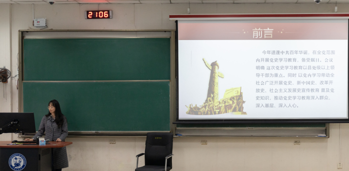 活动伊始,刘欣向学生们介绍了学习党史的意义,随后刘欣介绍了如何学习党史,刘欣介绍到,我们党的历史,就是一部不断推进马克思主义中国化的历史,就是一部不断推进理论创新、进行理论创造的历史。最后刘欣简述了如何开展党史学习教育的相关事项,刘欣提出要“要加强组织领导,要树立正确党史观、要切实为群众办实事、要注重方式方法创新”。活动最后,学生们一起交流讨论。