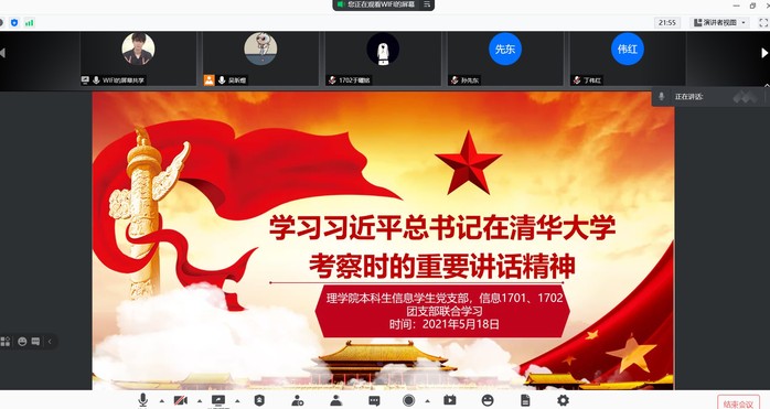 为深刻领会习近平总书记在清华大学考察时的重要讲话精神,明确新时代广大青年学生的历史使命和前进方向,必赢线路检测中心信息专业17级团支部联合学生党支部于5月18日晚开展了“学习习近平总书记在清华大学考察时的重要讲话精神”活动,本次活动由信息学生党支部副书记孙菲主持,信息17级全体团员及党支部成员参与。