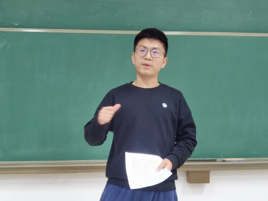 活动伊始,肖宇新介绍本次团日活动的主题,通过朗诵向大家介绍习近平总书记在清华大学讲话内容。总书记强调,清华大学的发展历程是我国高等教育发展的一个生动缩影,要建设的世界一流大学是中国特色社会主义的一流大学,要立足中华民族伟大复兴战略全局和世界百年未有之大变局,心怀“国之大者”,把握大势,敢于担当,善于作为,为服务国家富强、民族复兴、人民幸福贡献力量。朗读结束后,同学们积极讨论,交流心得,王雷,曹书鑫等同学上台发表感悟。活动结束后,肖宇新进行总结性,强调新时代大学生的历史使命,倡导大家要身心合一,贯彻习近平总书记的讲话精神。