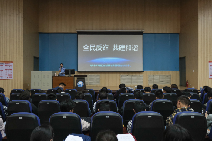 为提升学生防骗意识,减少受骗情况发生,5月25日必赢线路检测中心邀请青岛市公安局开发区分局反诈中心民警胡铭做预防网络诈骗讲座。据统计,电信诈骗受害者中在校大学生所占比例较高,占总体的33.2%。入学近一年以来,就有网络诈骗案件发生在同学身边。