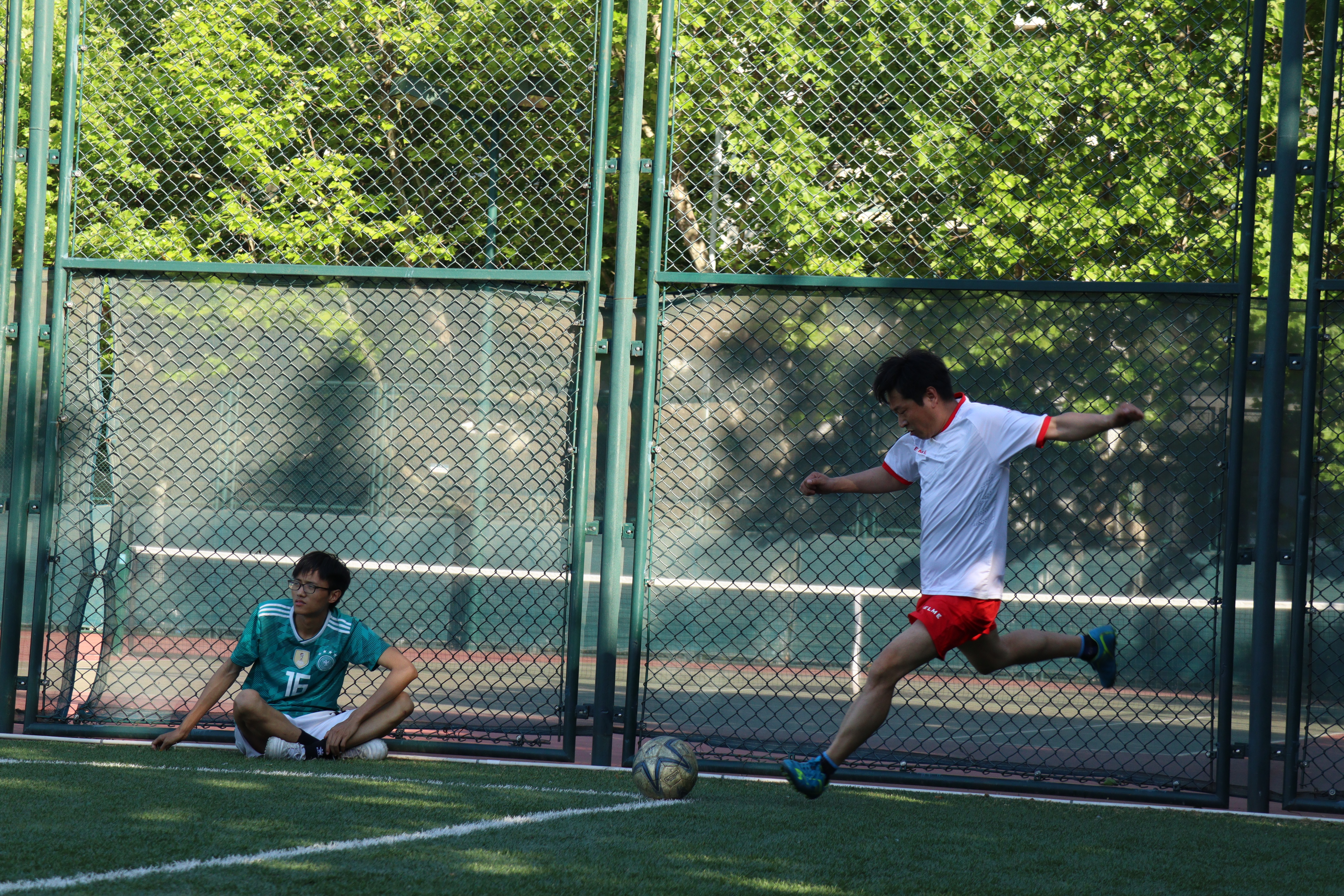 比赛于下午四点钟正式开球,在罗立文开球后比赛正式开始。比赛伊始,双方体力充沛,互有攻防,都未寻找到破门良机。在比赛第10分钟,教工队陈东猛在禁区乱战中,抓住时机,成功破门。而后学生队哈吉木拉提通过任意球直接破门得分,双方战成1:1。在比赛第18分钟,陈东猛再次抓住门前机会,梅开二度,比分改写为2:1,直到上半场结束。
