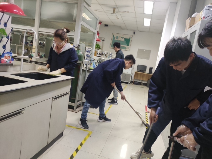 大家纷纷当起了“清洁工”,拿起扫帚、簸箕、拖把等打扫工具,撸起袖子、扑下身子,按照划定的责任区域,分工协作、密切配合,公益活动中,大家热情高涨、积极主动,充分发扬不怕脏、不怕苦、不怕累的劳动精神,以劳动为荣,乐在其中。有的清扫走廊中尘土与碎屑,有的拿起拖把将实验室与走廊拖干净,有的拿起抹布清理实验室的公共桌椅,环境焕然一新。