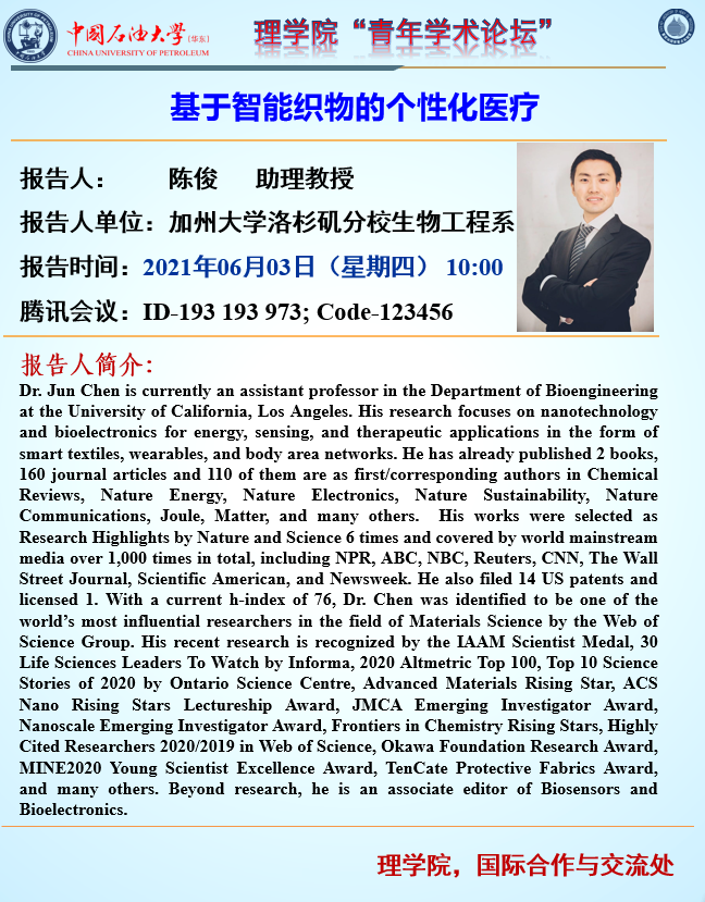 学术报告:必赢线路检测中心“青年学术论坛“—— 基于智能织物的个性化医疗