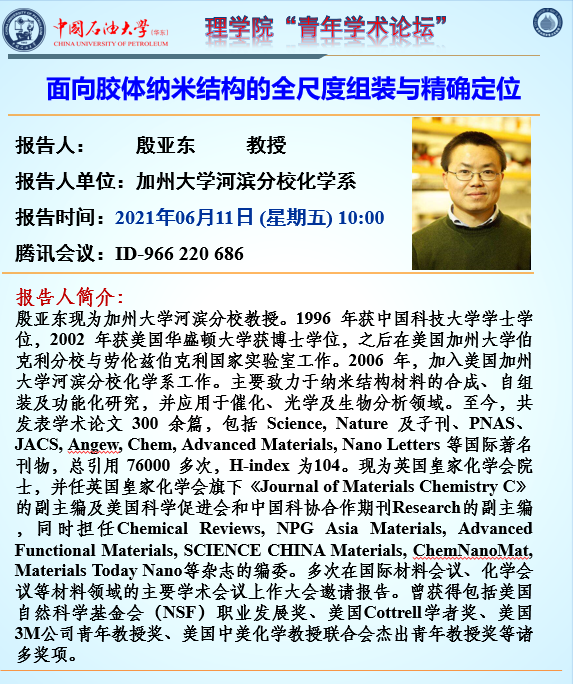 学术报告:必赢线路检测中心“青年学术论论坛”——面向胶体纳米结构的全尺度组装与精确定位
