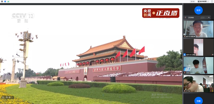 活动伊始,王晓东带领同学们回忆了中国共产党的建党历史,并简单介绍了陈独秀、张国焘、李达、李大钊、蔡和森等重要人物。随后,全体学生于腾讯会议观看中国共产党成立100周年直播盛况。最后,全体成员线上分享了自己观看后的心得体会。李福星说道:“历史证明只有中国共产党能够带领中华民族走上复兴的道路,我党已经经过了百年的征程,经历了从无到有从小到大的壮大。现今历史的重任已经落到了青年一代人的手中,我们定将发扬先辈艰苦奋斗的精神,不愧共产党人的身份,体现一名党员的责任与担当。”刘思瑶感慨:“感激革命先烈们,感激自己生在中国。愿山河锦绣,愿祖国繁荣。能见证这伟大的日子,不胜荣幸,永远感激。”