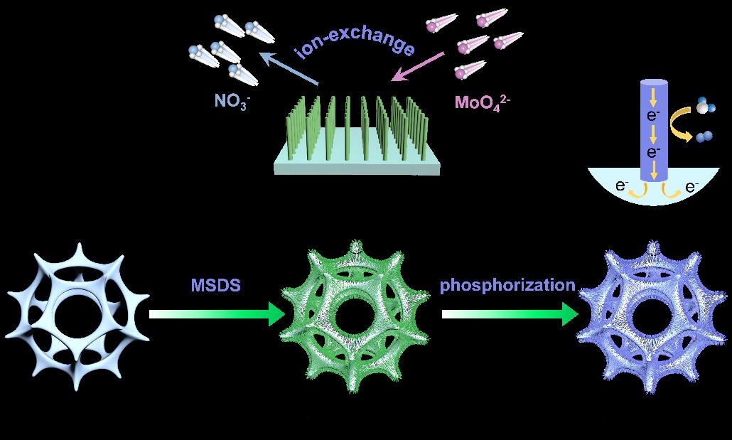 Mo-NiCoP/NF纳米针阵列催化剂合成示意图