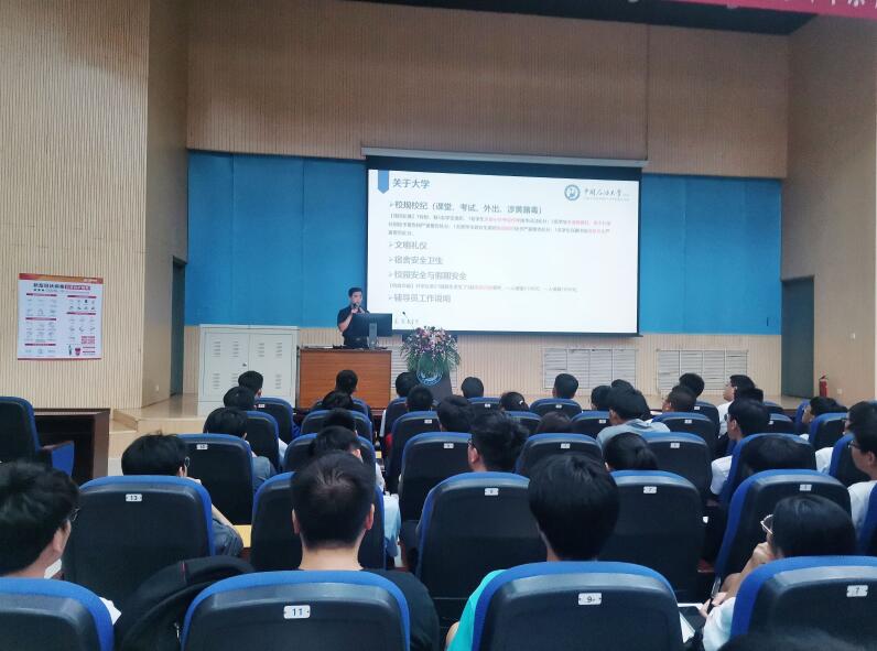会议伊始,刘威对同学们来到中国石油大学必赢线路检测中心表示了热烈的欢迎,并进行了自我介绍。接着,他从校规校纪、文明礼仪、宿舍安全卫生、校园安全与假期安全等方面为同学们讲解了注意事项。此后,韦素进行了自我介绍,并就学生资助、户口迁移、校园文明与安全等工作做了详细的解读,并表达了对新生的殷切期望,她提醒同学们一要时刻牢记安全第一位,二要重视学习的重要性,三要追求全面发展,高质量度过大学四年。随后,邱钰杰向学生介绍了第二课堂成绩单制度、石光系统使用及拓展服务功能,他强调,第二课堂是学生全面发展的成长性记录,大家要充分重视并积极参与,利用第二课堂的平台全面提高综合素质。