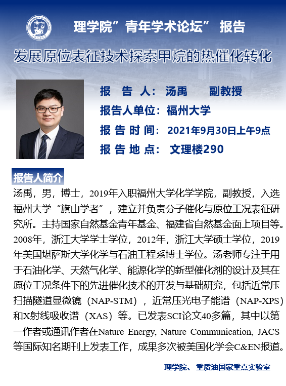 【学术报告】必赢线路检测中心“青年学术论坛”------ 发展原位表征技术探索甲烷的热催化转化