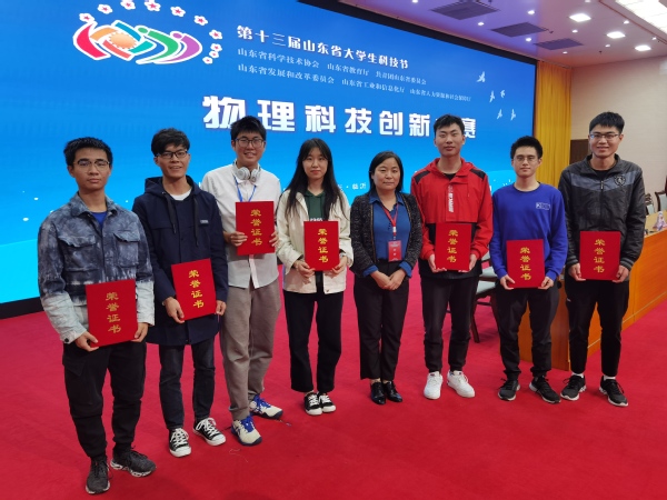 山东省大学生物理科技创新大赛是由山东省科学技术协会、中共山东省委高校工委、共青团山东省委员会、山东省发改委、山东省经信委、山东省教育厅联合主办的重要科技赛事,旨在高校学生中营造热爱科学、勇于创新、敢于竞争的环境和气氛,促进各高校物理实验教学的交流与合作,培养和提高各专业大学生的实验技能、科学素质和创新能力,服务于大学生就业与创业。(合影撰稿 王辰)