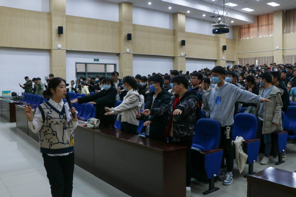 首先,辛晓雯带领在场学生进行了暖场活动,活跃会场氛围。
