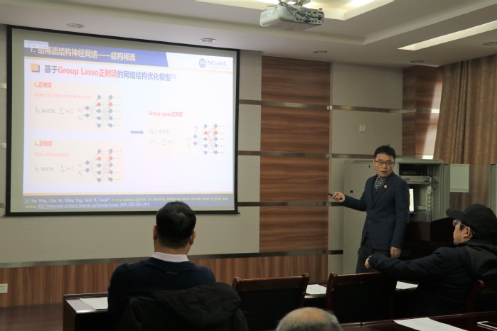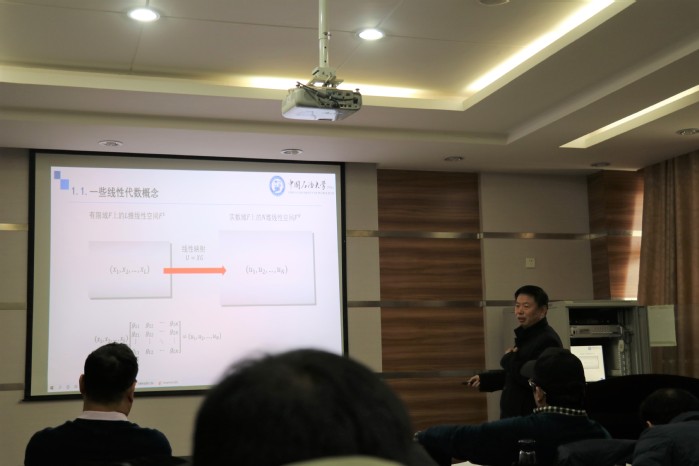 按照会议日程,上午进行了科研团队工作汇报,王健教授介绍了计算智能与石油大数据信息处理团队近些年在石油大数据方面做出的巨大成绩,蒋达清教授介绍了随机微分方程团队的科研进展,李维国教授详细讲解了团队在代数重构算法领域的研究进展,宋允全副教授介绍了统计机器学习团队整体的运转管理模式以及在国家重点研发计划项目申报的心得……。下午的报告也精彩纷呈。张敏及李磊两位老师的科研报告以及陈永刚和张丹青老师的教学报告尤为引人关注。张敏老师介绍了自己最新的科研成果,专注一个问题5年时光,理论分析70余页,完成《Construction of quasi-periodic solutions for the quintic Schrodinger equation on the two-dimensional torus》,功夫不负有心人,成果在国际重要期刊《TRANSACTIONS OF THE AMERICAN MATHEMATICAL SOCIETY》录用发表。李磊老师讲解了自己多年来在量子相干领域研究的最新成果,介绍了研究问题的难点之处以及自己在此方面的突破性进展。陈永刚老师详细介绍了自己负责数学学科竞赛以来的工作和取得的成绩,为学科竞赛的组织实施积累了宝贵的经验。张丹青老师介绍了自己多年来在思政教学改革方面的探索及经验,为数学教学如何在新形势下做好课堂思政和思政改革提供参考依据和宝贵经验,得到了广大教师同仁的认可和欢迎。