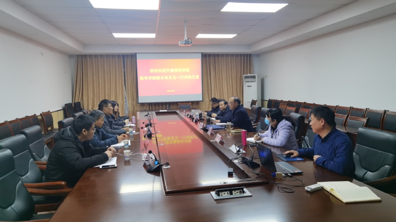 12月15日,齐鲁师范学院数学学院院长张克玉一行来院调研,院长魏宝君、副院长闫统江及数学学科各系主任与来宾座谈交流。