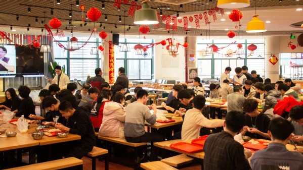 物理师生包饺子 王思佳摄