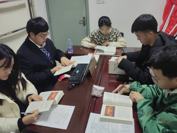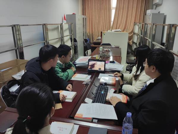 交流会伊始,辅导员韦素向各位实践队队员们介绍了此次保卫黄河行的目的和意义以及活动背景。由于此次活动是跟随习近平总书记脚步,重走黄河考察路线,所以之后辅导员韦素郑重地将《中国共产党党史》交给每位队员,实践队队员们挑选了自己喜爱的一篇进行阅读,然后每位队员结合此次保卫黄河行交流自己的读书心得。