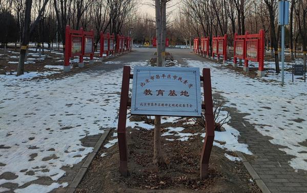实践队员于近日的一个周末来到霍营公园,虽然冬日的清晨气温寒冷,园区内已有市民围绕公园的步行道慢跑,小广场可以看到有老年人练习太极剑。在漫步园内的过程中,多样化的绿植品种应接不暇:草丛里的的木本花卉、一人高灌木、枝干茂密的原有的生态林。据官方给出的数据,目前各郊野公园绿化覆盖率普遍达到90%左右。步行道旁的自行车道上正有两个年轻的骑手飞驰而过,他们正在谈论昌平区建设的42公里绿道。这条健身观景绿道南起奥林匹克森林公园,北至十三陵水库,沿线串接起了奥北规划区内的各城市公园和北部郊区的部分湿地森林景观,贺新公园内的步行、骑行道就是其一部分。