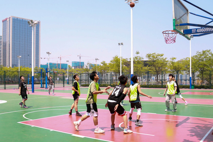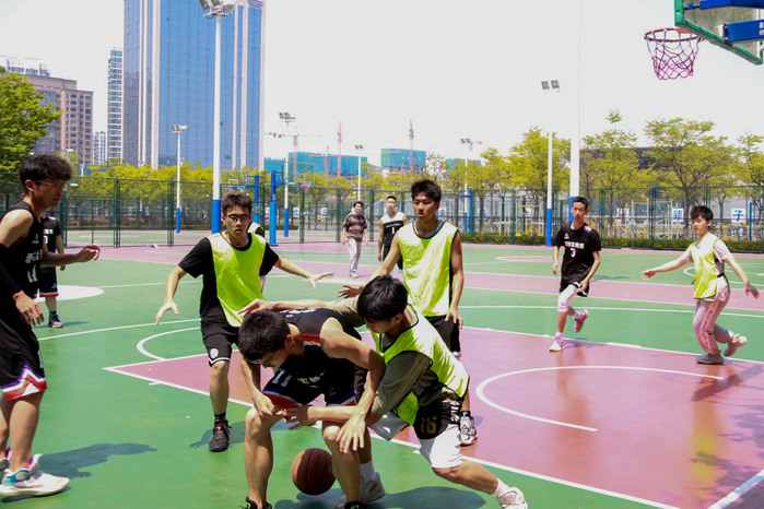 午间的赛场上,球员们配合井然有序,攻守切换迅速,挥洒着青春的汗水;场外观众为球员们加油助威,球进时,他们的欢呼声使得赛场的气氛愈加浓厚;裁判们公正严明,聚精会神观察着球场上的每一个细节,为球员提供了一个公平公正的竞争环境。