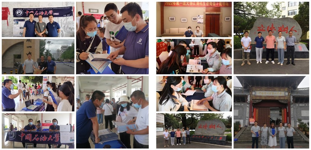 线下招生宣传共派出4支队伍,老师们冒着酷暑、暴雨分别奔赴山东泰安、云南、福建地区。闫统江副院长、王龙、刘超卓、方恒忠老师在泰安地区参加两场大型招生咨询会,走访两个高中并建立一个优秀生源基地。在宁阳一中挂牌仪式上,580分以上学生与家长50余人到现场达,当晚进如泰安咨询群的考生有20余人,招生宣传效果显著。云南地区,招生宣传老师早早准备,陈永刚、王辰、吕炜、胡哲老师共参加3场云南招生宣传咨询会,走访高中11个,计划建设生源基地2个。福建地区,刘金玉、张海军老师在福州(咨询会持续2天)、莆田、厦门共参加大型咨询会3场。路途遥远,有的地区交通不便,两地周转时间漫长;天气炎热,又恰逢雨水天气,咨询的学生家长众多,经常需要不停的讲解顾不上喝水。老师们不怕苦不怕累,心里一直抱着一个信念,就是为学校多招优秀的生源。