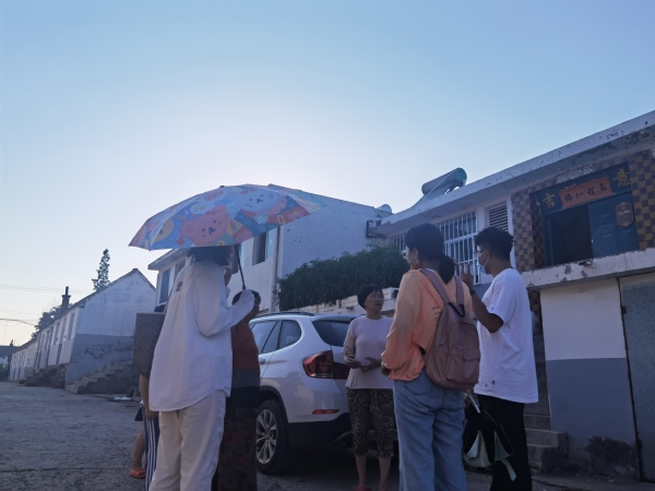 下午,实践队通过实地走访和采访调查华夏城周边村落,走进阮家口村,与当地村民和村委会进行交流。“华夏城的建设促进了阮家口村附近的环境保护、生态建设,同时进行了新农村建设,前后打通了自来水、电等系统,修建了健身广场等房屋。”阮家口村妇联主席江培兰向实践队员介绍道,“‘绿水青山就是金山银山’,在未来阮家口村也会跟着习近平总书记的指示建设好乡村、保护好生态环境。