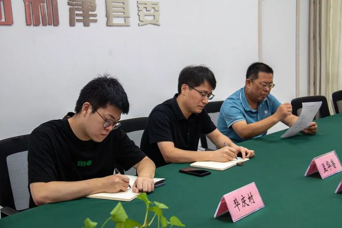 实践队得到了利津县团委等单位的大力支持。抵达达利津县后,实践队与当地政府进行本次社会实践活动的对接会。会上,利津县团委书记孟华鲁对本次社会实践给予高度肯定,鼓励在校大学生为高质量发展贡献自己的力量。通过对接会,实践队对本次社会实践的基本情况有了进一步的了解,也获得了利津县有关单位的支持,为后期活动的开展奠定了坚实基础。最后,刘威向孟华鲁赠与我校纪念品并合影留念。