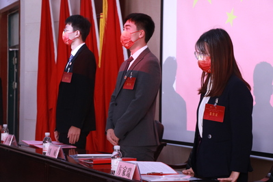 院团委书记刘威发表讲话。向广大学生代表提出三点希望与要求:一是希望学生会、研究生会继续聚焦新时代新思想,引领同学们勇担时代责任;二是希望学生会、研究生会积极打造特色品牌,助推同学的全面成长成才;三是希望学生会、研究生会持续深化自身改革,激发内生动力与组织活力。他表示,学院将继续关心支持学生会、研究生会的建设和发展,努力创造更好的条件和环境,让每一名同学都成为最好的自己。