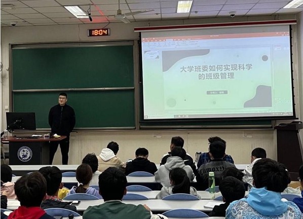 会议伊始,辅导员崔皓就班委自身定位话题进行讲解,他提出班委应充分发挥好师生之间的桥梁作用,有激情、有责任感地忧同学之所忧、解同学之所难;同时,他强调学生干部要首先明确自己学生的定位,时刻把第一课堂学习成绩放在第一位。随后,崔皓分别指出了现有的班委会建设与班委反思总结不足等问题,告诫各位班委要树立团队意识,加强在晨练考勤与活动策划等方面的团体合作并增强创新性思维、做好阶段反思。与此同时,他又针对近期工作安排分别对各班干部提出七项具体工作要求。除此之外,兼职辅导员雷传捷向各班委分享自己学生干部工作经历,强调学生干部对自己的定位应当是建设者、服务者、引领者、躬行者等。会议最后,崔皓老师就各班班干部工作情况进行总结,告诫各位班干部要谨记以情感人、以德服人,在工作方法上要认清工作理念、打开工作格局、滤清工作思路,成为优秀的班干部团体。