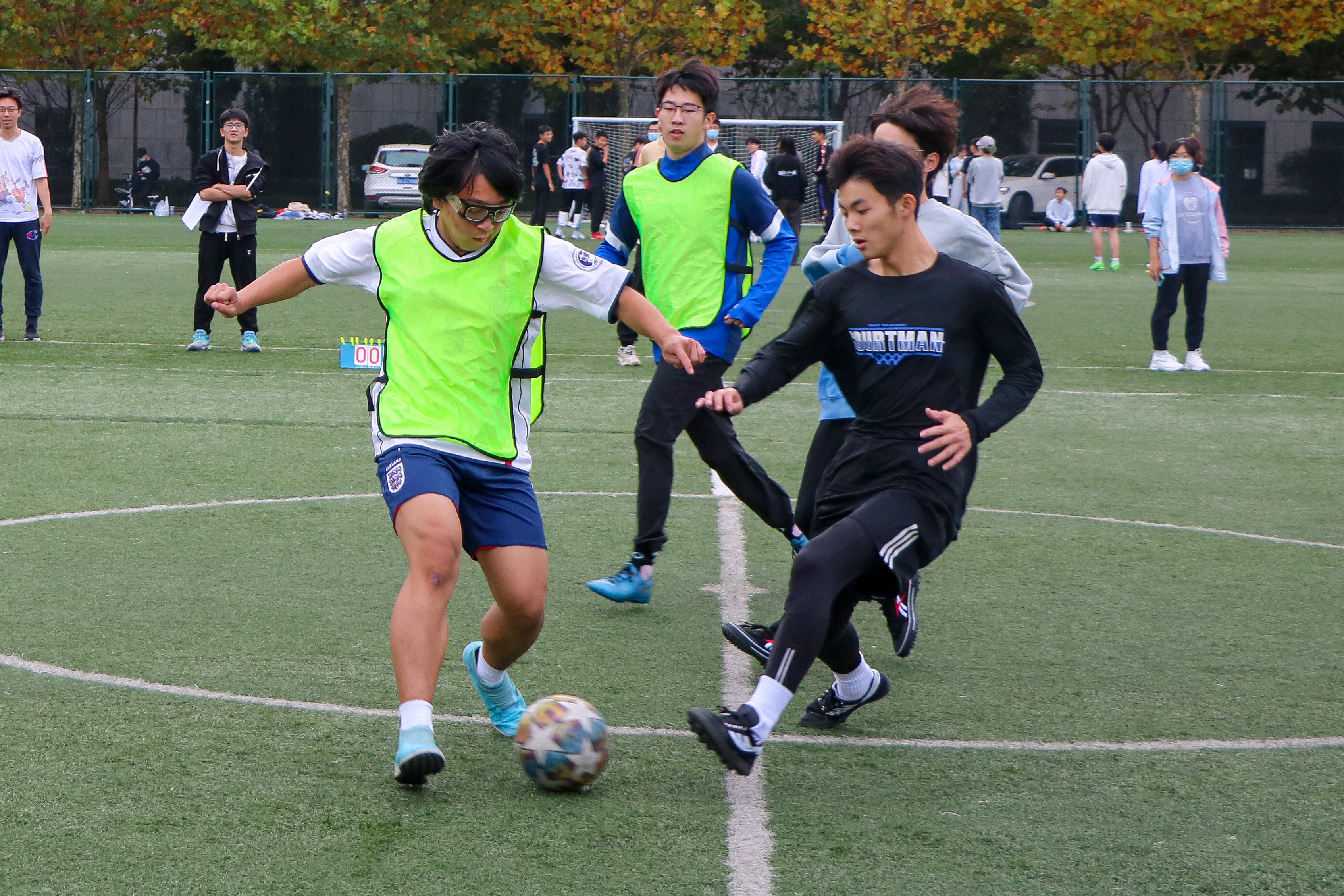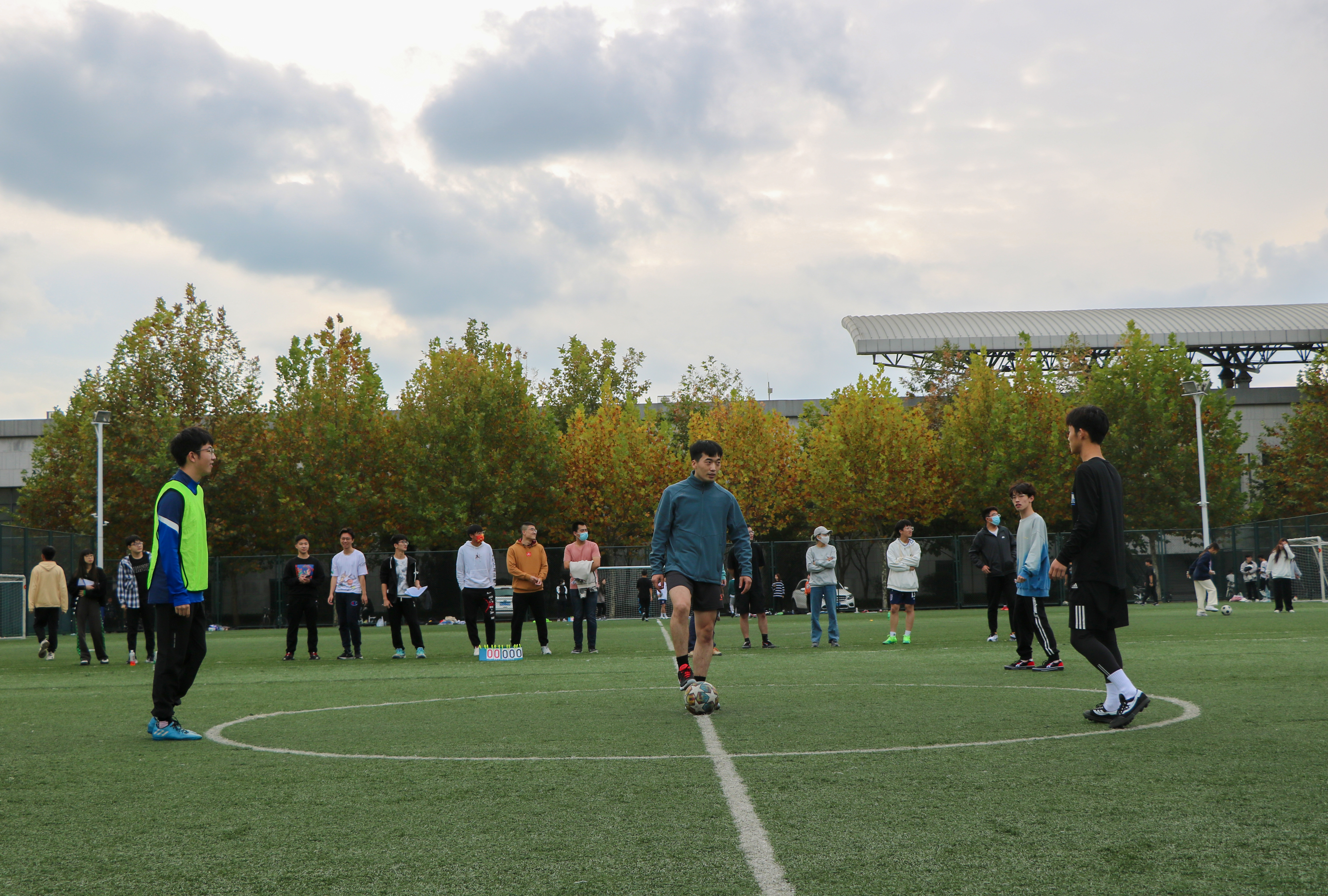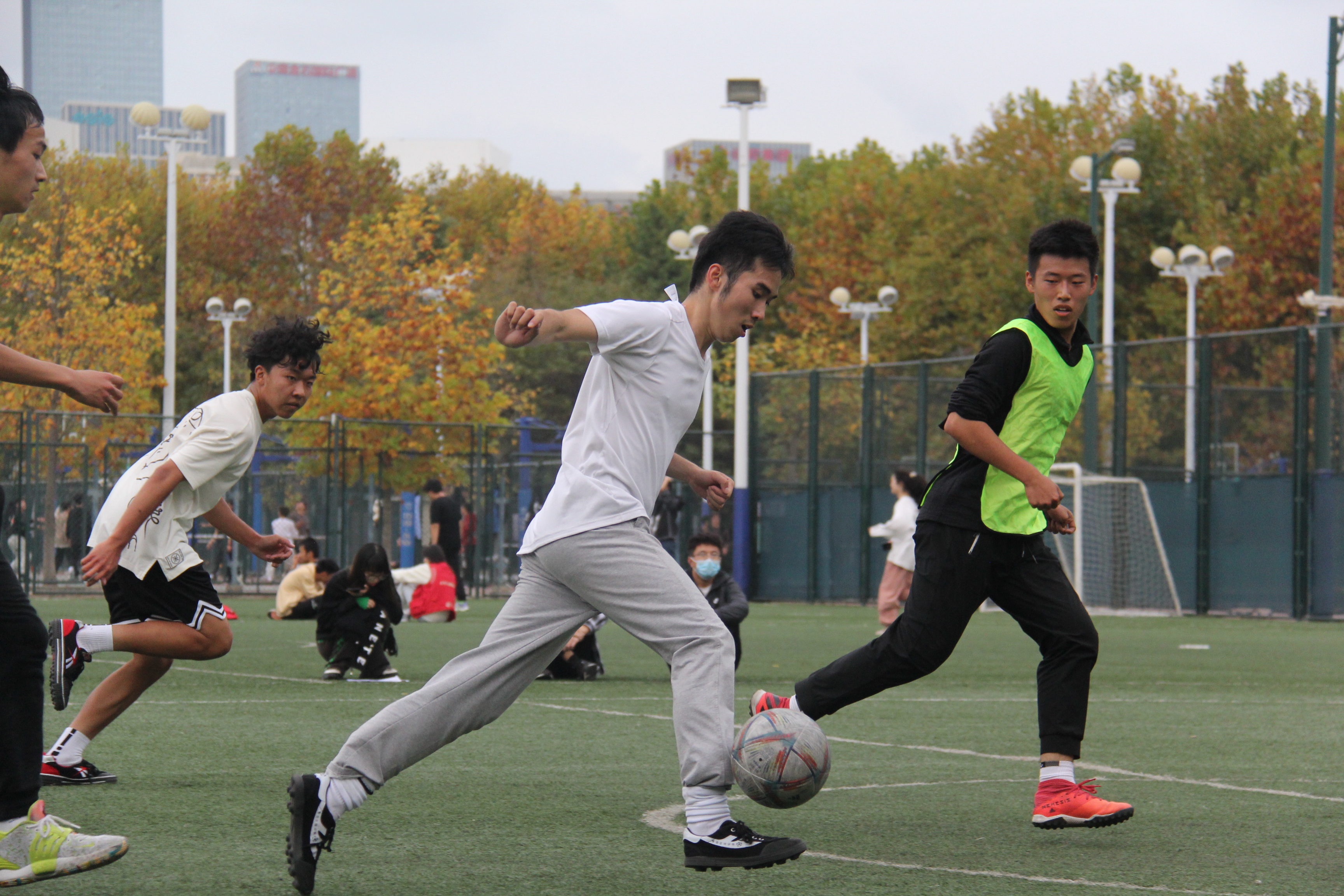 男足五人制比赛中,刘威老师为比赛开球。球员们激烈对抗,物理队在与光电信息科学与工程队的比赛中表现良好,场上各队员之间默契配合,场外观众为他们呐喊助威,最终物理队取得优异的战果。女足点球大战中,各个队员相互合作,团结一致顺利完成了比赛。