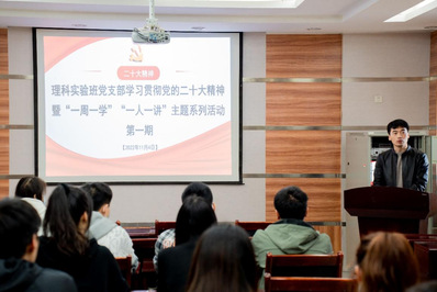 11月4日,理科实验班学生党支部在文理楼254召开全体会议,学习传达党的二十大精神,启动“四个一”工程主题系列活动。理科实验班党支部书记刘威主持会议,支部全体党员参加会议。