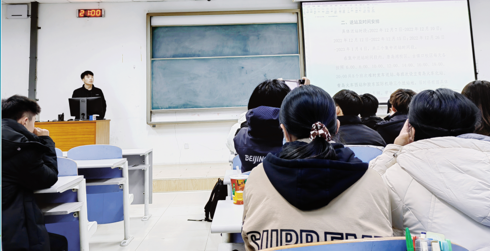 刘威总结了年级出现的问题,并对今后的工作提出了相应规划和要求,重点强调了人身安全、疫情防控等方面的问题,并对寒假学生离校相关工作和考试安排做出详细解释和重点说明。