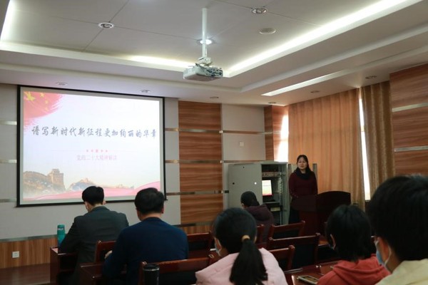 为学习宣传贯彻党的二十大精神,12月9日,学院邀请马克思主义学院副院长宋海儆老师为师生党员讲党课,她以“谱写新时代新征程更加绚丽的华章”为主题,从五个“牢牢把握”的角度,解读党的二十大报告内容和丰富内涵。党课由光电学生党支部书记刘冰主持,学院党委副书记李宝玺、光电师生党支部以及全体辅导员参加。