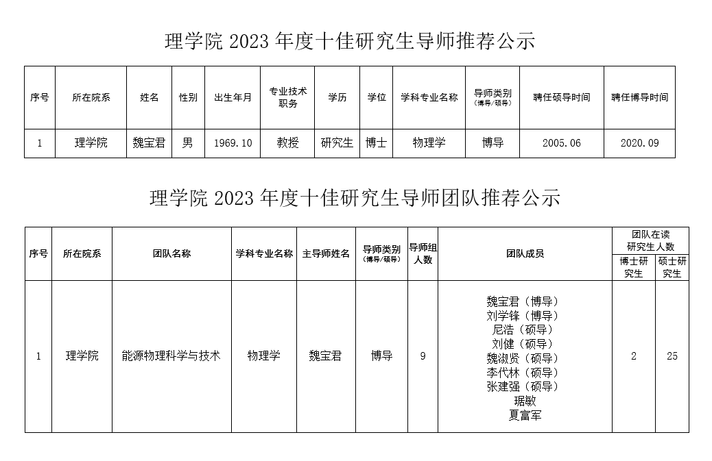 必赢线路检测中心2023度十佳研究生导师和十佳研究生导师团队推荐公示