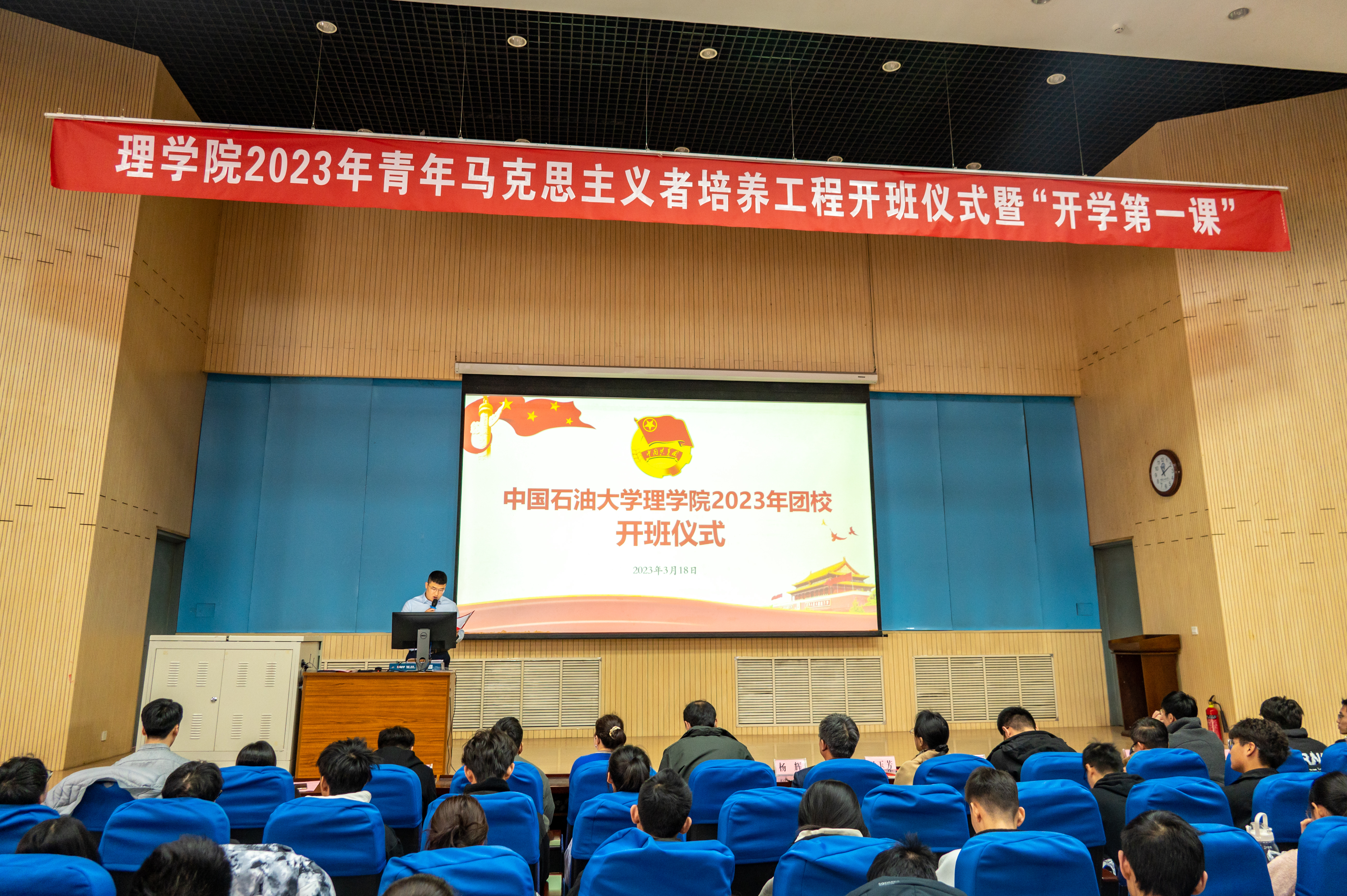 3月18日,必赢线路检测中心在南教100报告厅举行青年马克思主义者培养工程开班仪式暨“开学第一课”。必赢线路检测中心党委书记杨辉、副书记李宝玺、2022级班主任、全体辅导员及2022级全体学生出席仪式。仪式由2022级辅导员崔皓主持。